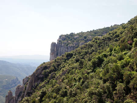 Rocky slopes of Montserrat, covered with dense vegetation.