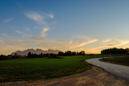 Mountain Landscape at Sunset. Cloudy sunser in the Montserrat mountain, near Barcelona. View of the Montserrat mountain from the the road to this mountain.