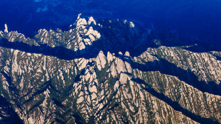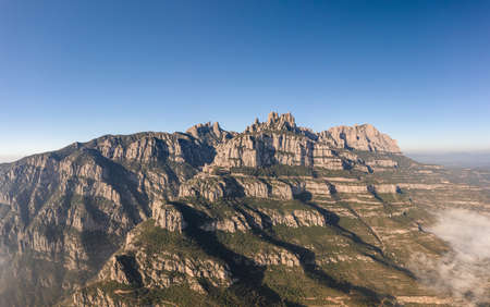 Aerial view of Montserrat mountains in a beautiful summer day, Catalonia, Spain