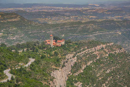 Aerial view of the monastery Santa Maria de Montserrat located in Montserrat Mountain in Catalonia Spain.