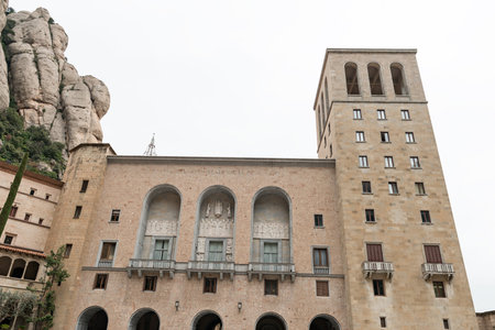 Montserrat Monastery is a beautiful Benedictine Abbey high up in the mountains near Barcelona, Catalonia, Spain