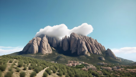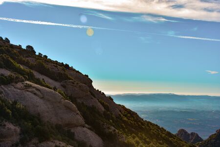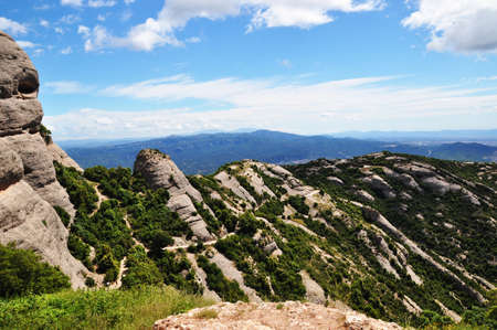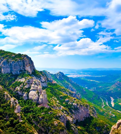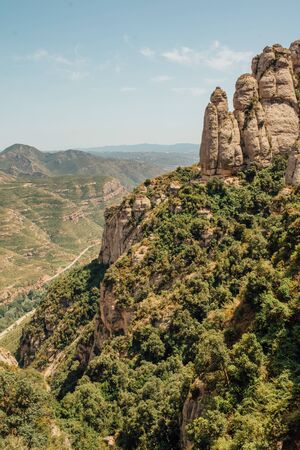 View of Montserrat mountains. Beautiful landscape in Catalonia Spain.
