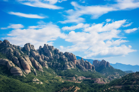 Views of the Montserrat massif, mountain in the province of Barcelona, ​​Catalonia on a day with blue sky and white clouds
