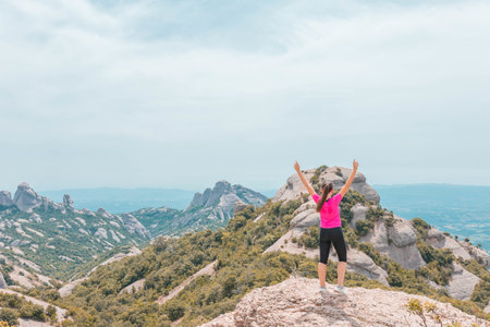 A young female enjoying the beautiful mountainous landscape in Catalonia, Spain