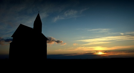 Silhouette of the Church of St. Michael the Archangel, one of the Oldest Churches in Slovakia, dating from the 11th century, Located at Draovce, Slovakia