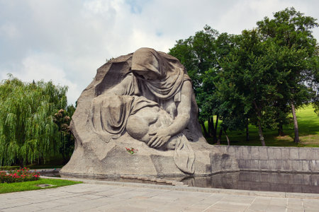 Volzhsky, Russia - JULY 14, 2017: War memorial built to mothers and children of war military Stalingrad battle. Was built in 2015. Sunny hot summer day