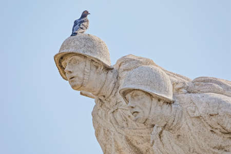 Saint-Petersburg, Russia, 26 August 2020: Close-up detail of sculptural composition Siege of Leningrad. Monument Heroic defenders of Leningrad on Victory Square.
