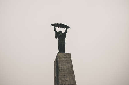 Budapest, Hungary - Nov 6, 2019: Liberty Statue on the top of the Gellert Hill in the Hungarian capital. In remembrance of the Soviet liberation of Hungary during World War II. Horizontal photo.