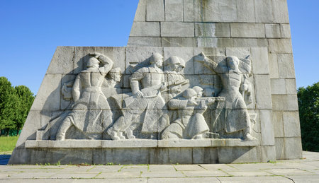 Sofia, Bulgaria. May 2023. Detail of the Monument to the Soviet Army in a park of the city center