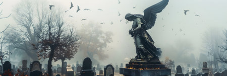 A serene and somber view of rows of tombstones in a cemetery, showing the enduring presence of memory and remembrance.