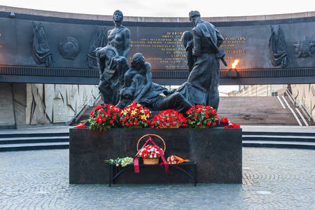 Saint-Petersburg, Russia, 26 August 2020: Sculptural composition Siege of Leningrad. Monument Heroic defenders of Leningrad on Victory Square.