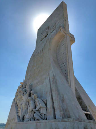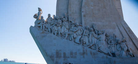 The statues on the Monument of Discoveries under the sunlight in Lisbon in Portugal