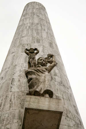 Amsterdam, Netherlands, 01/21/2008: Details of the Amsterdam National Monument, at the bottom of the great obelisk there are allegorical figures de Vrede (peace) represented by a woman and a child