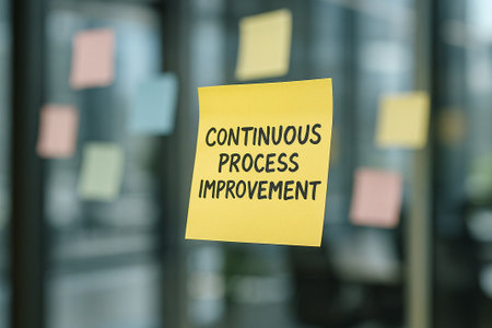 Continuous Process Improvement text with doodle style business elements such as arrows, graphs, gears. Business improvement concept.