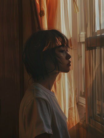 A person stands near a window, lost in thought as soft daylight filters in, capturing a moment of hesitation and reflection.