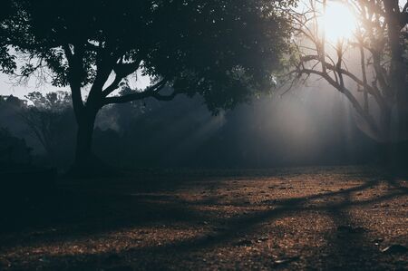 tropical forest morning scene, nature sunlight background
