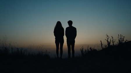 couple silhouette at dusk, generative ai