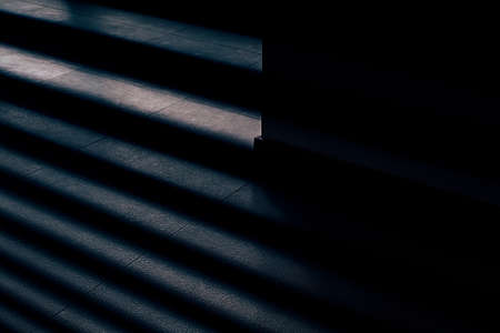 Abstract pattern of alternating light and shadow stripes cast diagonally across a dark background. Minimalist design.