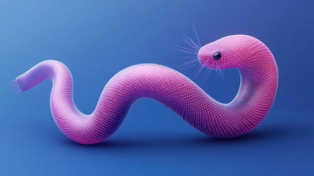 This unique digital illustration captures an abstract snake in vibrant colors, blending organic and geometric forms to create a striking visual impact.