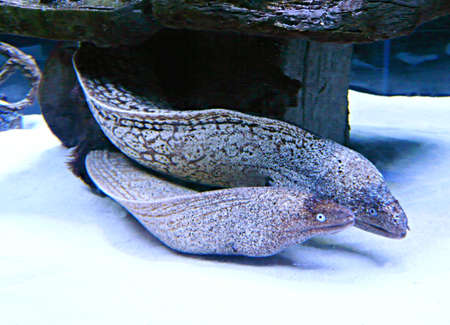 A moray does open mouth in an aquarium