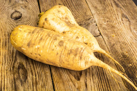 Freshly Harvested Parsnip on Rustic Wood Surface, a Taste of Autumn's Bounty