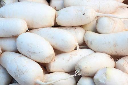 Fresh white radish at the marketplace