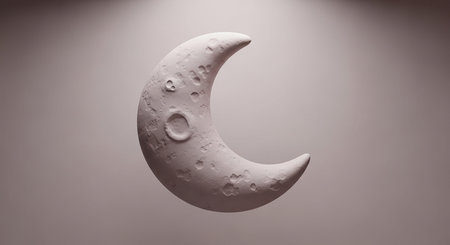 With showing crescent moon with craters and textured surface illuminated by soft light against a muted background, 3d render. resolution