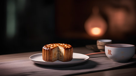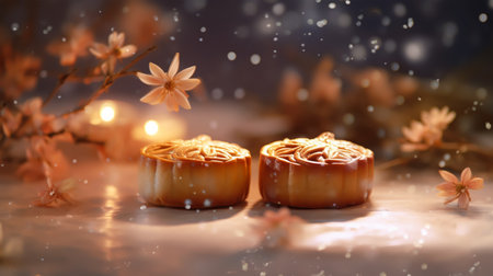 An AI generated illustration of delicious fresh mooncakes on the table