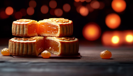 Traditional Mooncakes Celebrating Cultural Heritage with Golden Crusts and Festive Delicacies