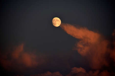 Full moon and clouds in the late evening
