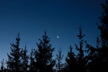 A beautiful skyscape with a moon in the dark skies. Springtime scenery before the dawn with moon. Spring nights in Northern Europe.