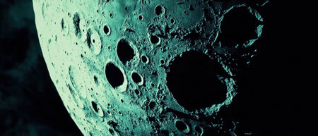 Detailed view of cratered moon surface with rough texture, highlighting celestial formation, geology and space exploration.