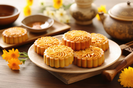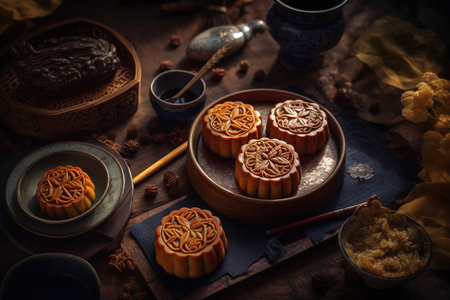 An AI generated illustration of delicious fresh mooncakes on the table
