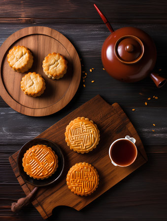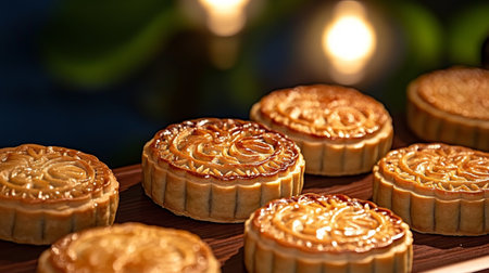 Traditional Mooncakes Display with Intricate Designs Celebrating Asia s Festive Holiday Atmosphere