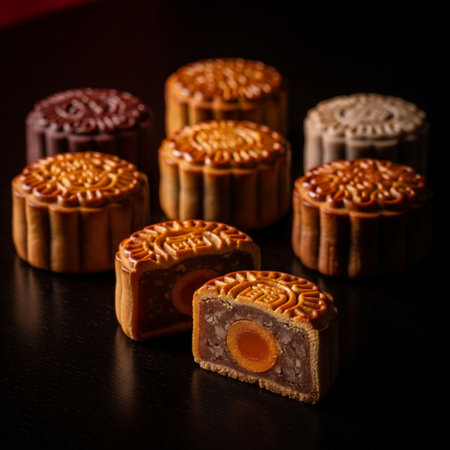 Traditional Mooncakes Celebrating Cultural Heritage with Golden Crusts and Festive Delicacies