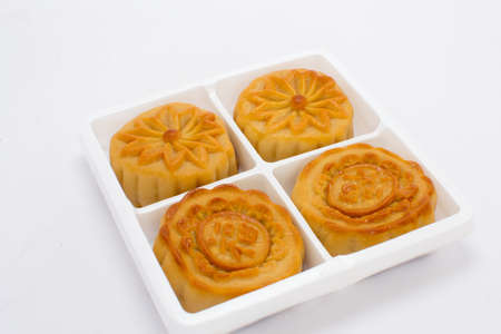 Moon cake on white background, Chinese mid-autumn festival food.