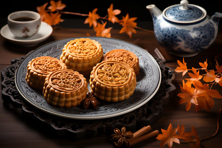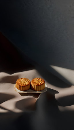 Autumn festival celebration with traditional mooncakes on elegant white background
