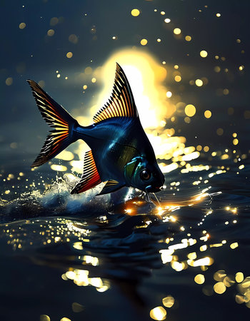 Glowing fish swimming in the moonlight