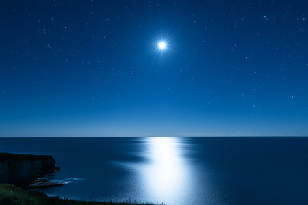 The tranquil sea under the starry sky, the blue dream of the moonlight