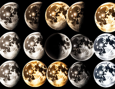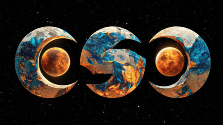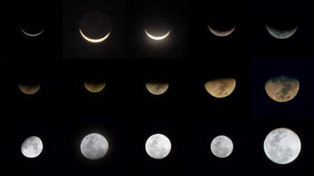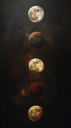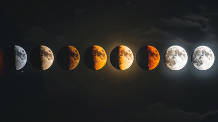 phases of the moon in night sky, cosmic alignment. celestial phenomenon and astronomy concept