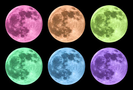 Moon phases isolated on black background. Blue, pink and violet moon phases.