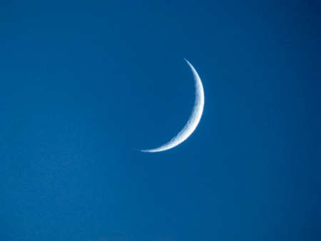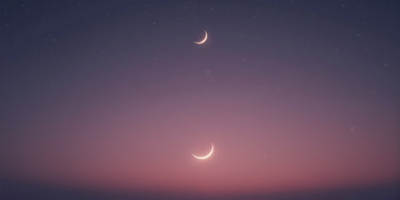 Delicate crescent moon illuminates the night sky amidst twinkling stars and serene darkness