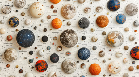 Aesthetic flat lay realistic planet models. Black background. Space and galactic education concept. Generative AI.