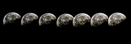 Panoramic composite of moon phases captured in photographic detail with nasa elements