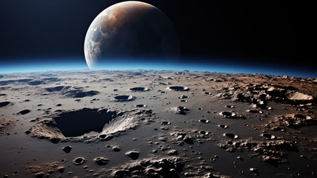 A moon surface and a big planet background