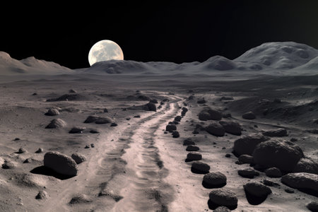 empty lifeless lunar surface with craters under black sky, background, landscape