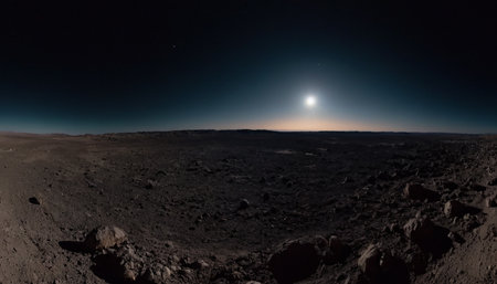 moons rocky surface captured from rovers angle, created with generative ai