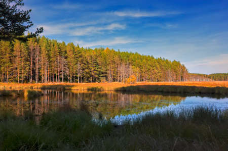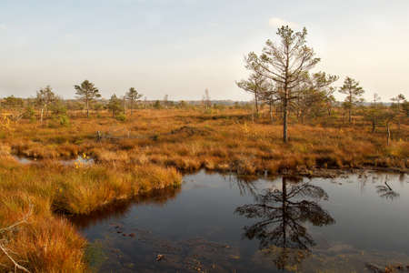 Autumn landscape in the swamp. Beautifull view of the swamp Elnya Belarus