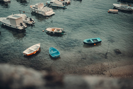 Boats in seaside marina, Croatian town of Crikvenica, selective focus