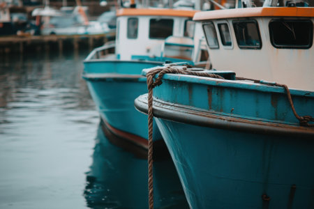 This image showcases vibrant and weathered fishing boats docked at a harbor, highlighting intricate textures and colors that evoke a sense of rustic charm and maritime culture.